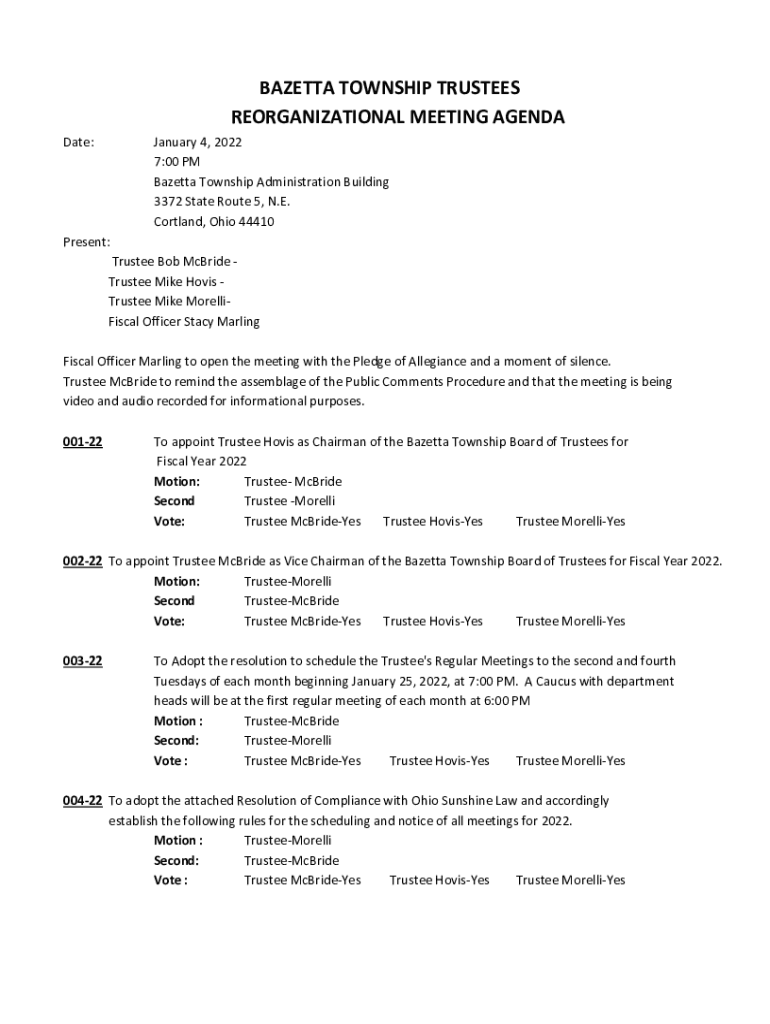 REORGANIZATION AL MEETING AGENDA