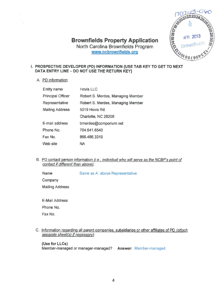 www.ncbrownfields.orgI. PROSPECTIVE DEVELOPER (PO) INFORMATION USE TAB KEY TO GET TO NEXT