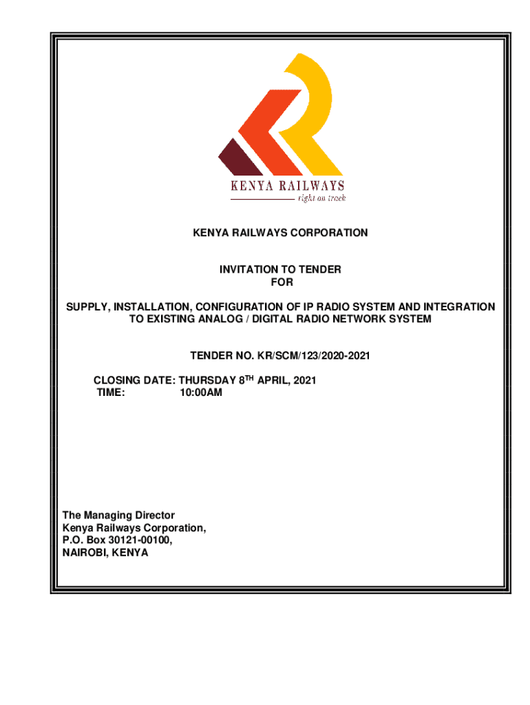 KENYA RAILWAYS CORPORATIONINVITATION TO TENDER