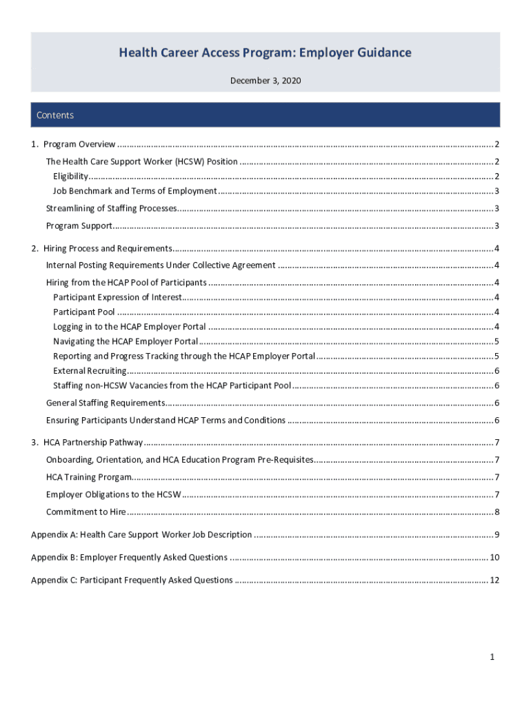 Health Career Access Program: Employer Guidance December 3, 2020Contents 1. Program Overview .............................................................................................................................................................