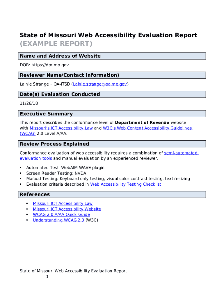 Instructions for the form Website Evaluation Report Sample: Accessibility, Privacy ... - at mo