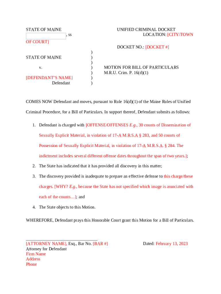 The STATE OF MAINE SUPERIOR COURT/UNIFIED CRIMINAL ... is a fillable form in MS Word extension which can be completed and signed for specific reasons. Next, it is furnished to the relevant addressee in order to provide specific info and data. The completion and signing can be done manually in hard copy or using a trusted tool e. g. PDFfiller. Such services help to fill out any PDF or Word file without printing them out. While doing that, you can customize its appearance depending on your requirements and put an official legal e-signature. Upon finishing, the user ought to send the STATE OF MAINE SUPERIOR COURT/UNIFIED CRIMINAL ... to the respective recipient or several recipients by mail or fax. PDFfiller has got a feature and options that make your blank printable. It includes different options for printing out. It doesn't matter how you'll file a document - physically or by email - it will always look neat and clear. In order not to create a new file from scratch every time, turn the original file into a template. Later, you will have a rewritable sample.