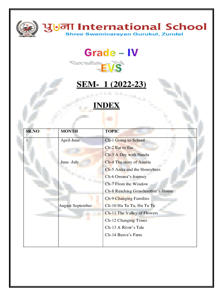 INDEXER.NOMONTHTOPIC1AprilJuneCh1 Going to School