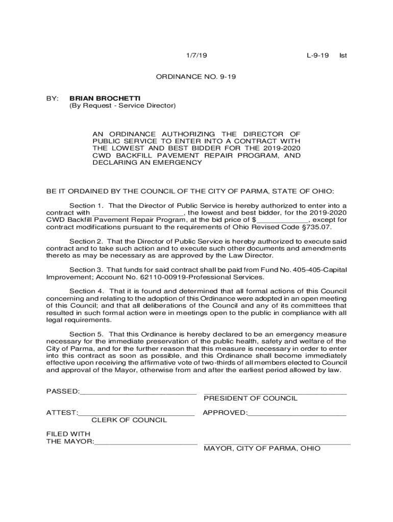 Get the free Service Director) AN ORDINANCE AUTHORIZING THE DIR