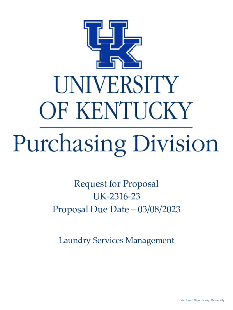 Request for Proposal UK231623 Proposal Due Date 03/08/2023 Laundry Services Management Equal Opportunity UniversityREQUEST FOR PROPOSAL (RFP)ATTENTION: This is not an order. Read all instructions,