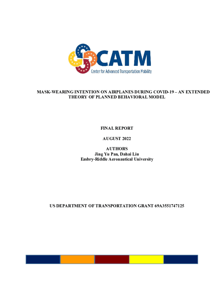 MASTERING INTENTION ON AIRPLANES DURING COVID-19 AN EXTENDED THEORY OF PLANNED BEHAVIORAL MODELING REPORT AUGUST 2022 AUTHORS Jing You Pan, Dalai Liu EmbryRiddle Aeronautical University US DEPARTMENT