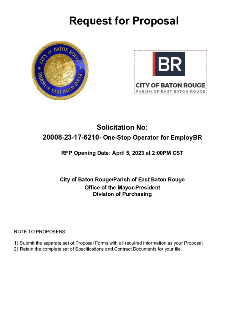 RFP Opening Date: April 5, 2023, at 2:00PM City of Baton Rouge/Parish of East Baton Rouge