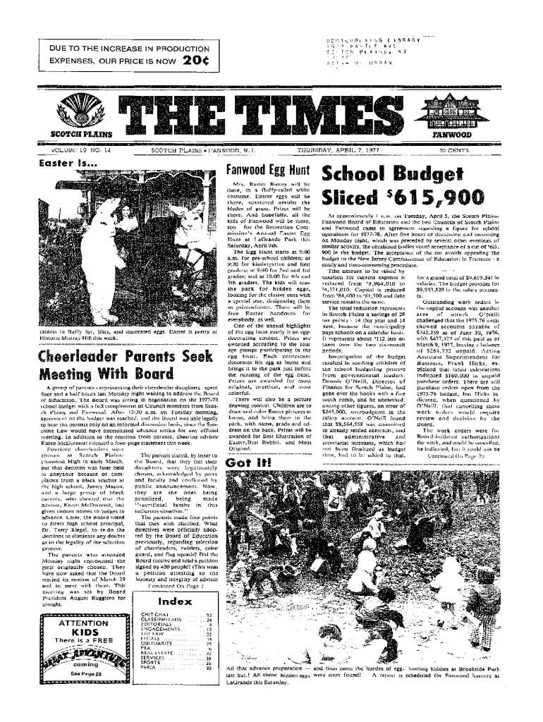 S C OT C H Pi ft i S i I i i : DUE TO THE INCREASE IN Production an r i !expenses, OUR PRICE IS NOW, \'ii T. SCOTCH poems VOLUME 19 NO. 14AFANWOOD SCOTCH PLAINS MANHOOD, N.J. Easter Thursday, APRIL