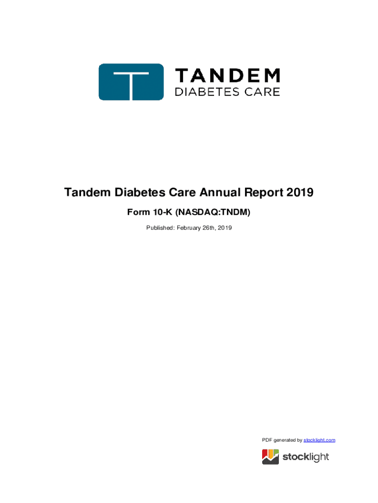 Tandem Diabetes Care Annual Report 2019 Form 10K (NASDAQ:TDM) Published: February 26th, 2019PDF generated by stock light. Counted STATES SECURITIES AND EXCHANGE COMMISSION WASHINGTON, D.C. 20549FORM