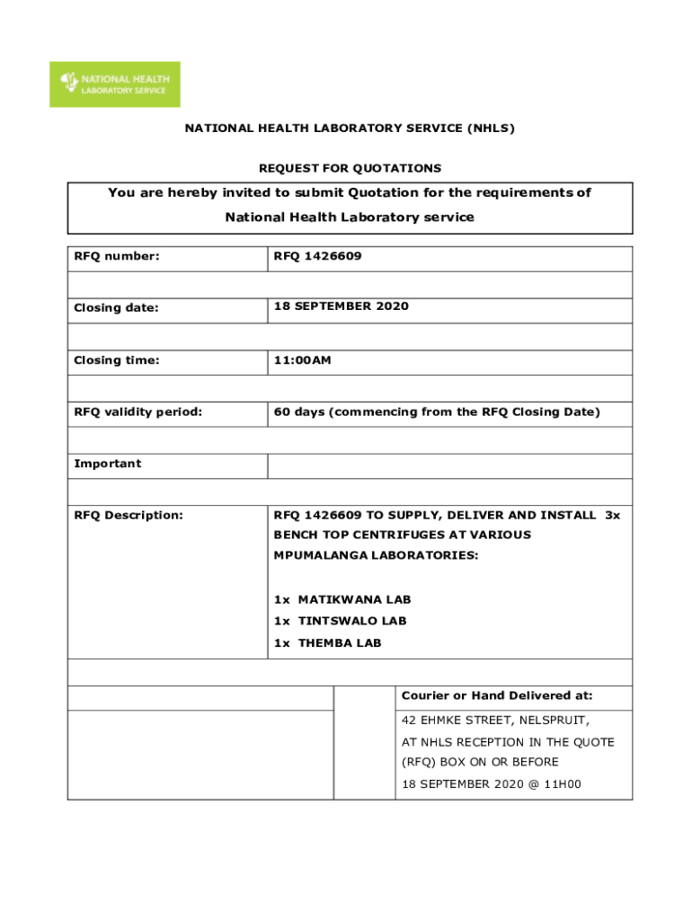 NATIONAL HEALTH LABORATORY SERVICE (NHS)