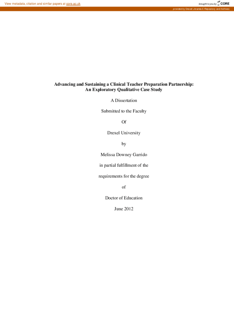 View metadata, citation and similar papers at core.ac.brought to you byCOREprovided by Drexel Libraries Repository and ArchivesAdvancing and Sustaining a Clinical Teacher Preparation Partnership: