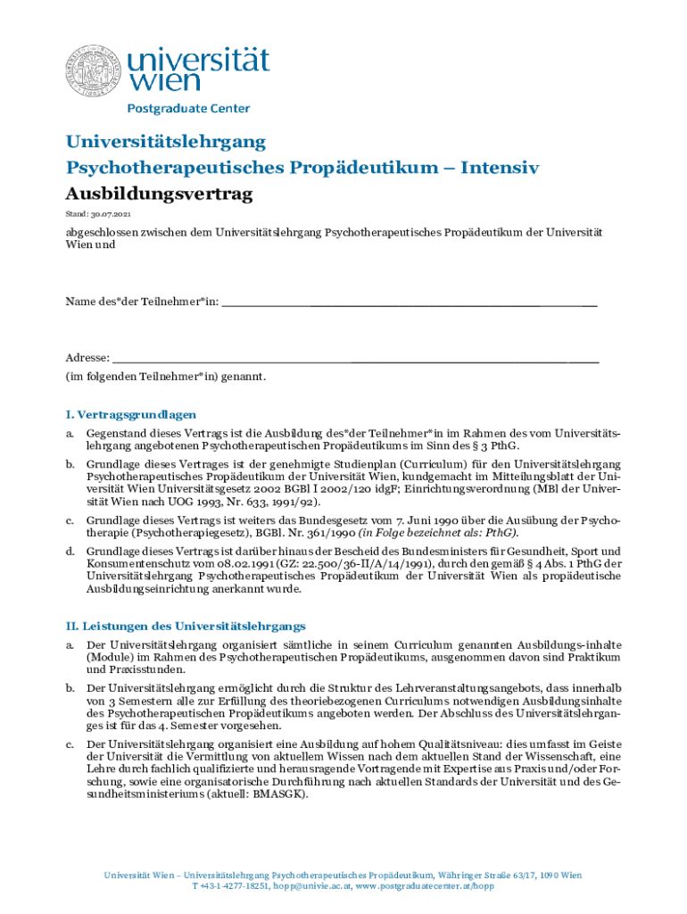 Stand: 30.07.2021abgeschlossen Wijchen them Universittslehrgang Psychotherapeutics Propdeutikum her University