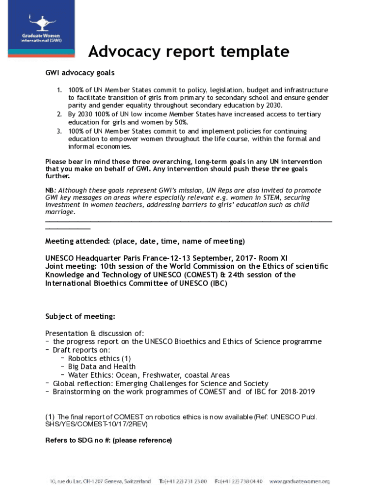 Get the free Advocacy report template - Graduate Women International