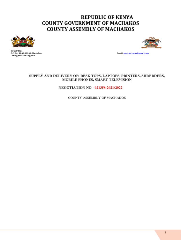 Along Mature NgomaEmail: assemblymks@gmail.comSUPPLY AND DELIVERY OF: DESK TOPS, LAPTOPS,