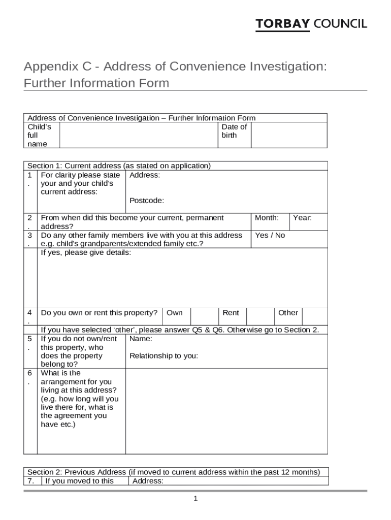 Instructions for the Address of Convenience Investigation: Further Ination form