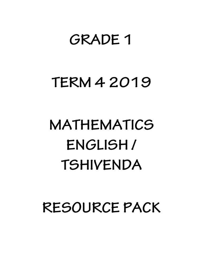 GRADE 1 TERM 4 2019 MATHEMATICS ENGLISH / TSHIVENDA RESOURCE PACKPRINTABLE RESOURCES The following printable resources are included in this section: 1. Resource sheets 2. Mental mathematics challenge