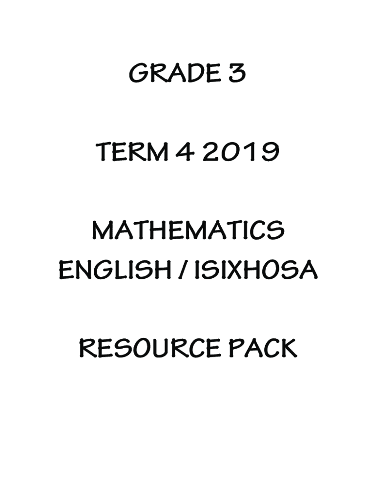 GRADE 3 TERM 4 2019 MATHEMATICS ENGLISH / XHOSA RESOURCE PACKPRINTABLE RESOURCES The following printable resources are included in this section: 1. Resource sheets 2. Mental mathematics challenge
