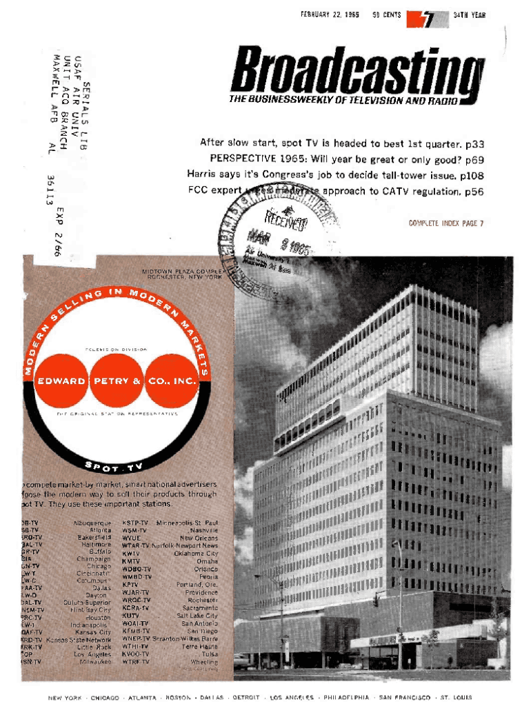 FEBRUARY 22, 196559 Censor,34TH YEARBroadcastingTHE BUSINESS WEEKLY OF TELEVISION AND Radiometer slow start, spot TV is headed to the best 1st quarter. P33