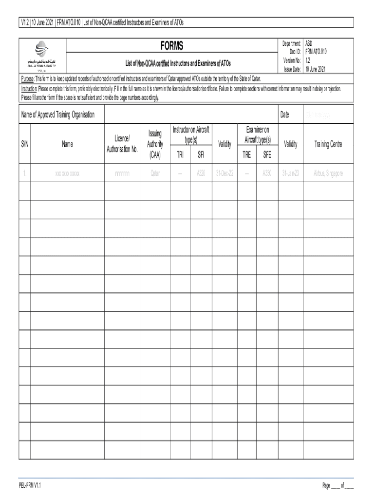 V1.2 | 10 June 2021 | FRM.ATO.010 | List of NCAA certified Instructors and Examiners of Atos Department: Doc ID: Version No: Issue Date:FORMS List of NCAA certified Instructors and Examiners of Toward