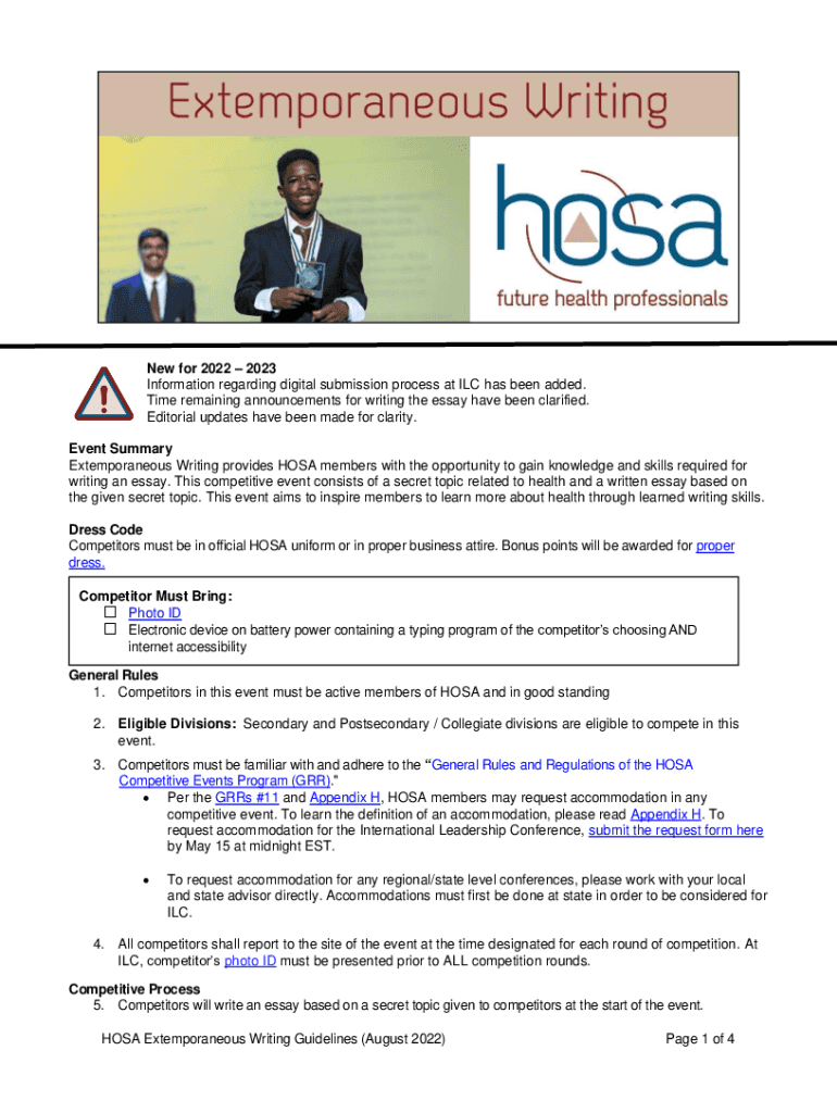 New for 2022 2023 Information regarding digital submission process at ILC has been added. Time remaining announcements for writing the essay have been clarified. Editorial updates have been made for