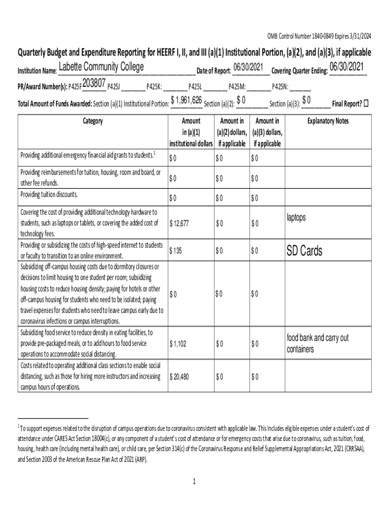 QuarterlyBudgetandExpenditureReportingforHEERFI, II, Andrei(a)(1)Institutionalization, (a)(2), and(a)(3), inapplicable