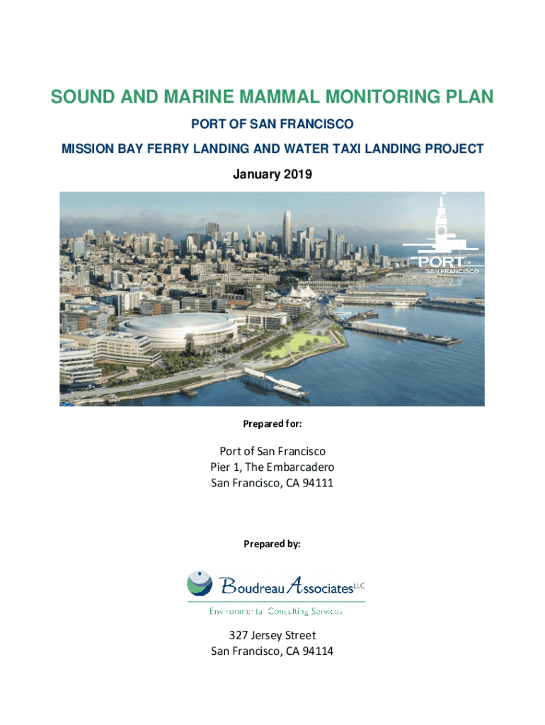 SOUND AND MARINE MAMMAL MONITORING PLAN PORT OF SAN FRANCISCO MISSION BAY FERRY LANDING AND WATER TAXI LANDING PROJECT January 2019Prepared for:Port of San Francisco Pier 1, The Embarcadero San Francisco,