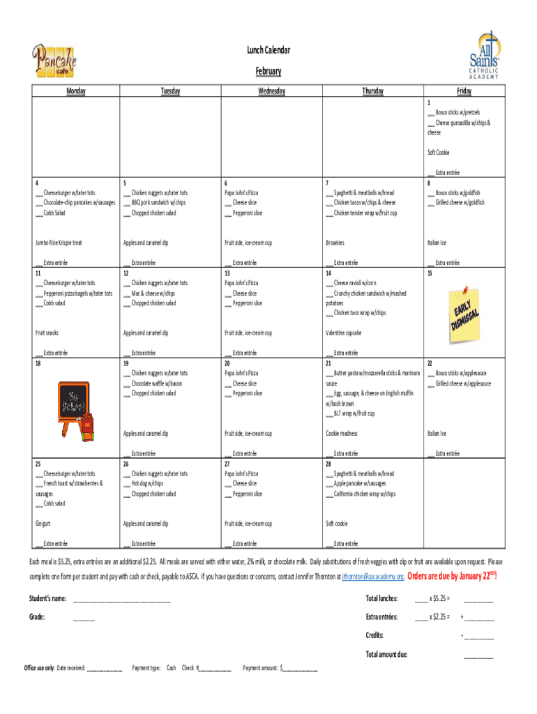 Fill out your lunch calendar february online with pdfFiller!