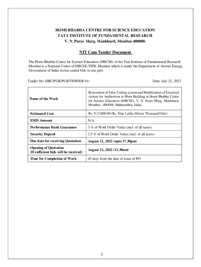 V. N. Rural Mary, Mankind, Mumbai400088.NIT Come Tender Document