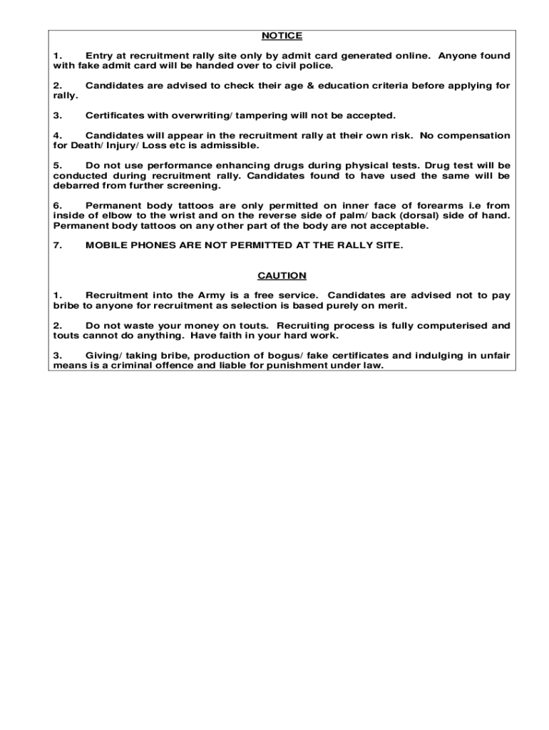 Get the free NOTICE 1. Entry at recruitment rally site only by admit card ...