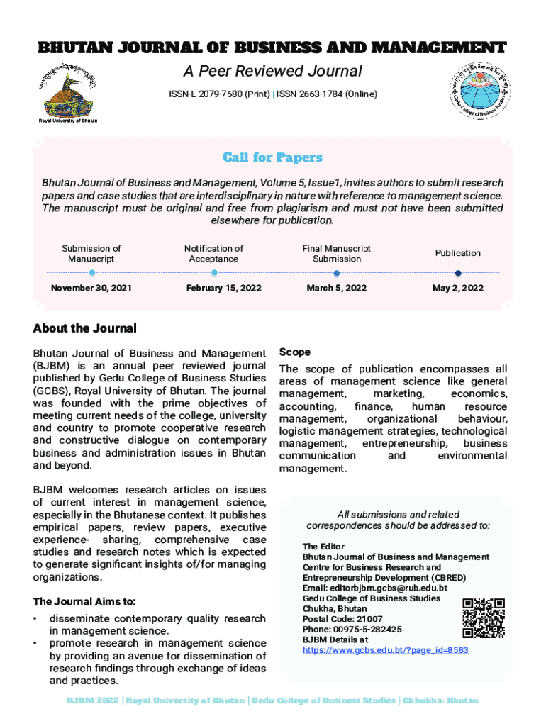 Get the free Bhutan journal of business and management Latest Journal ...