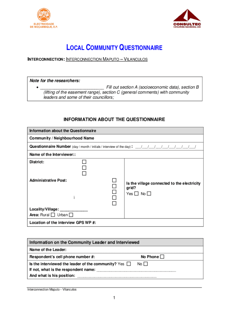 LOCAL COMMUNITY QUESTIONNAIRE INTERCONNECTION: INTERCONNECTION MAPUTO VILANCULOSNote for the researchers: ___ Fill out section A (socioeconomic data), section B (lifting of the easement range), section