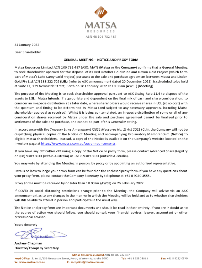 Get the free NOTICE AND PROXY FORM Matsa Resources Limited (AS
