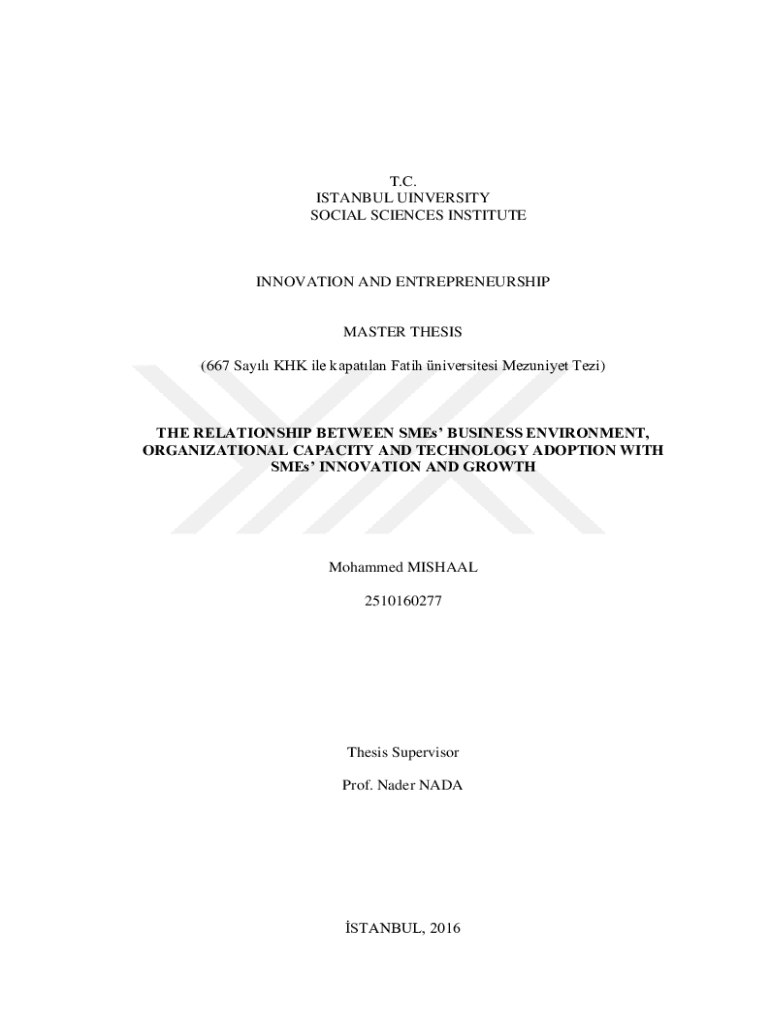 T.C. ISTANBUL UNIVERSITY SOCIAL SCIENCES INSTITUTEINNOVATION AND ENTREPRENEURSHIPMASTER THESIS (667 Says kHz mile Mazatlan Faith universities Mezuniyet Teri)THE RELATIONSHIP BETWEEN SMEs BUSINESS