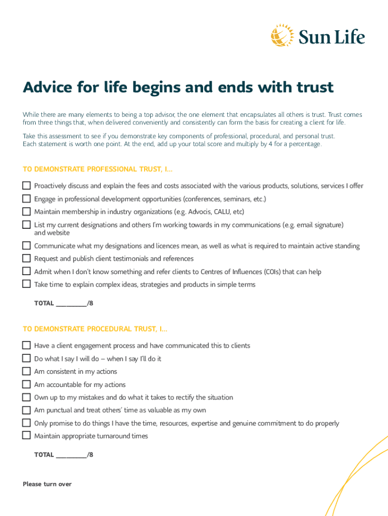 Advice for life begins and ends with trust While there are many elements to being a top advisor, the one element that encapsulates all others is trust. Trust comes from three things that, when delivered