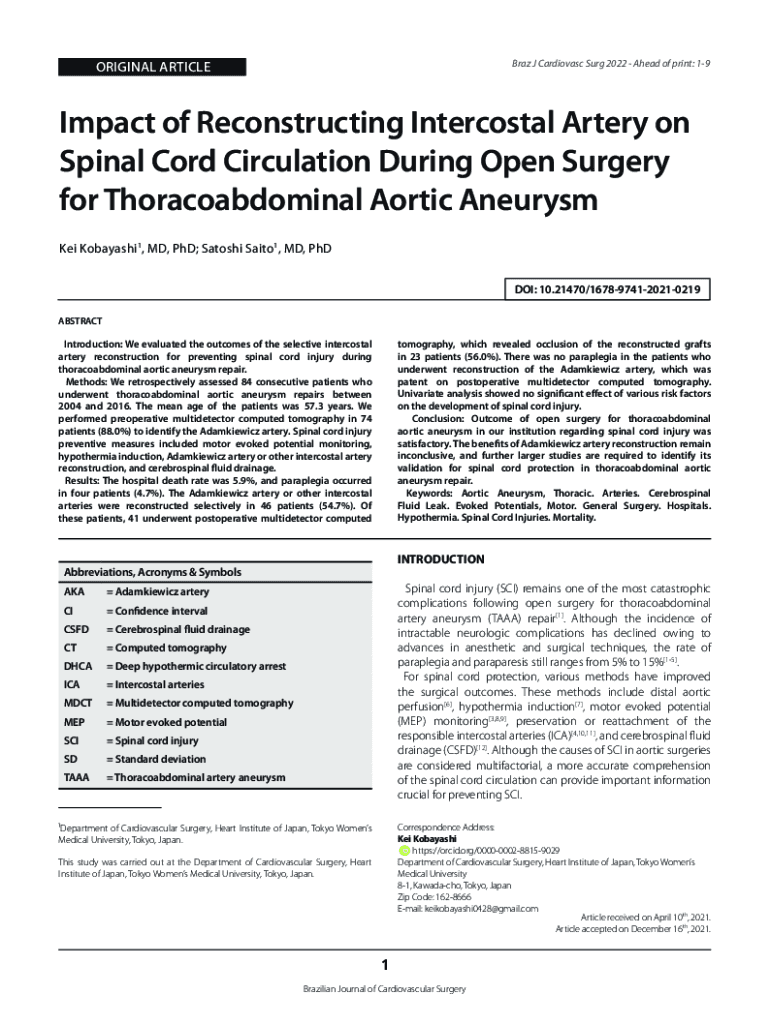 Get the free Impact of Reconstructing Intercostal Artery on Spinal Cord ...