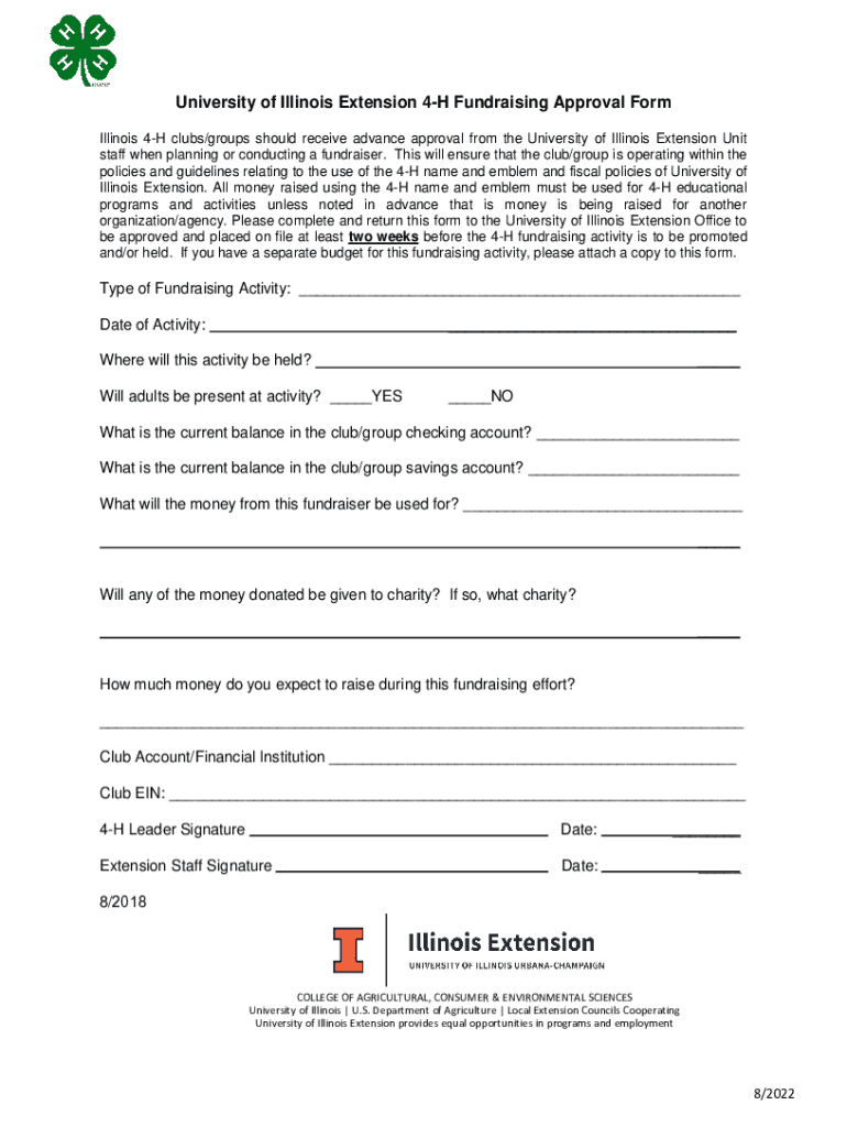 University of Illinois Extension 4H Fundraising Approval Form Illinois 4H clubs/groups should receive advance approval from the University of Illinois Extension Unit staff when planning or conducting