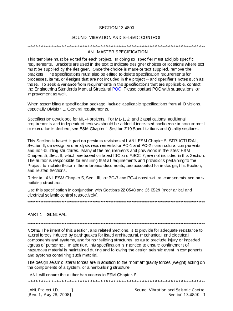 Instructions for the form 13 48 00 - Sound, Vibration, and Seismic Control - ARCAT - engstandards lanl
