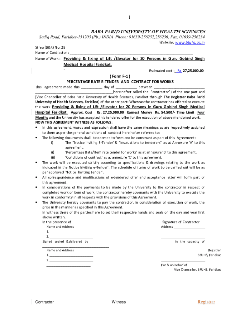 1BABA FARID UNIVERSITY OF HEALTH SCIENCES Sadiq Road, Faridkot151203 (Pb.) INDIA Phone: 01639256232,256236, Fax: 01639256234 Website: www.bfuhs.ac.in Stereo (B&R) No. 28 Name of Contractor : ___ Name