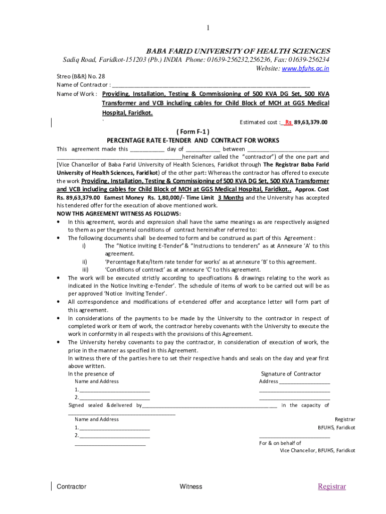 1BABA FARID UNIVERSITY OF HEALTH SCIENCES Sadiq Road, Faridkot151203 (Pb.) INDIA Phone: 01639256232,256236, Fax: 01639256234 Website: www.bfuhs.ac.in Stereo (B&R) No. 28 Name of Contractor : ___ Name