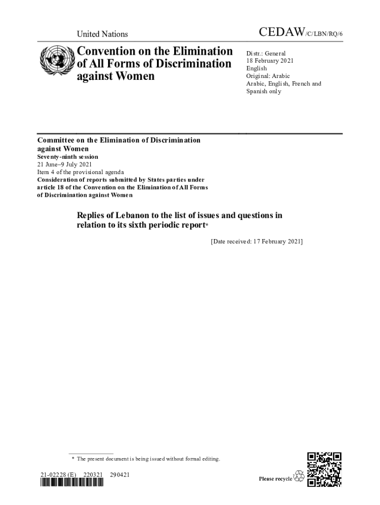 CEDAR/C/LBN/RQ/6United NationsConvention on the Elimination