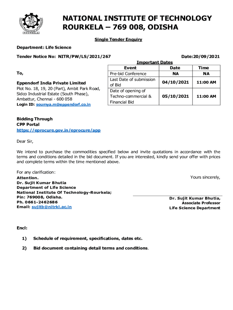 Get the free national institute of technology rourkela-769008 (odisha ...