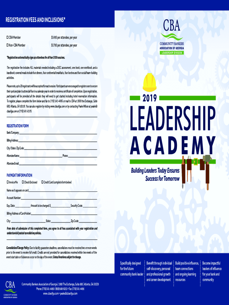 CBA Member$1495 per attendee, per yearNonCBA Member$1795 per attendee, per year×Registration automatically signs up attendees for all four 2019 sessions.