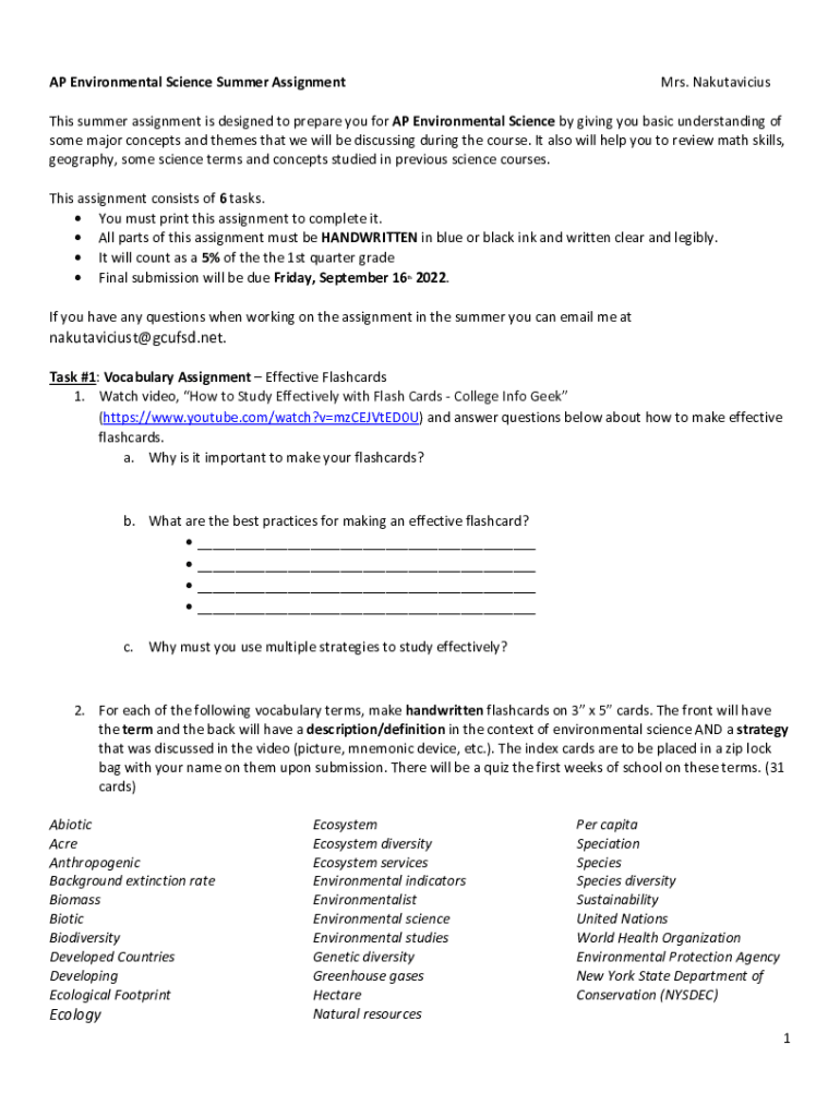 Read through the AP Environmental Science summer assignment to understand the requirements.