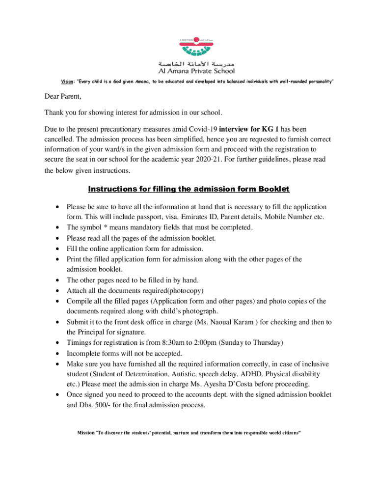 Vision: Every child is a God given Amanda, to be educated and developed into balanced individuals with well-rounded personalities Parent,