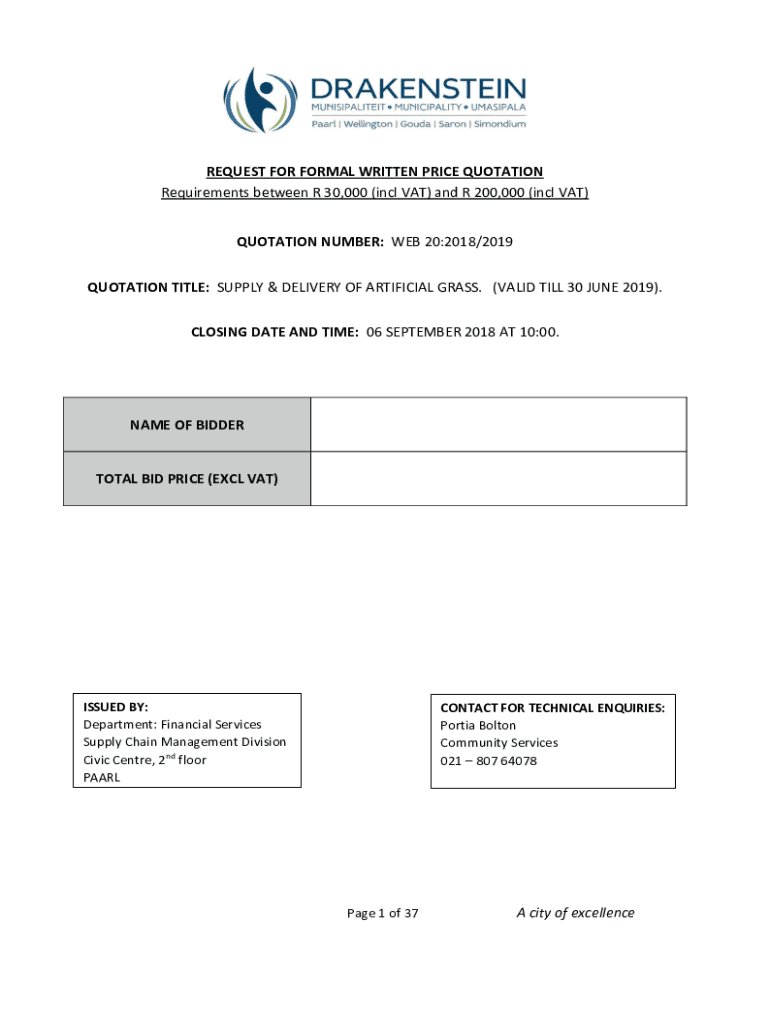 QUOTATION TITLE: SUPPLY & DELIVERY OF ARTIFICIAL GRASS.