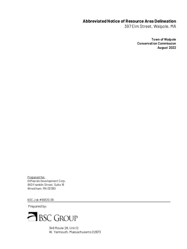 Get the free Abbreviated Notice of Resource Area Delineation 397 Elm ...