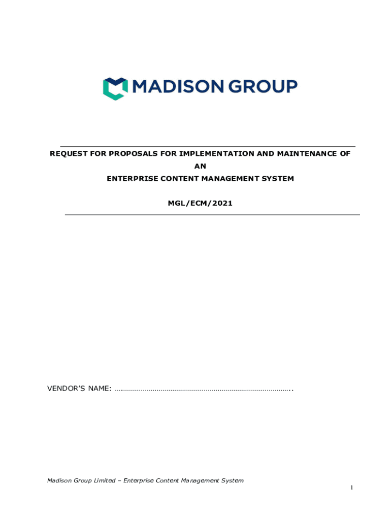 REQUEST FOR PROPOSALS FOR IMPLEMENTATION AND MAINTENANCE OF AN ENTERPRISE CONTENT MANAGEMENT SYSTEM MEL/ECM/2021VENDORS NAME: ... Madison Group Limited Enterprise Content Management System1Table of