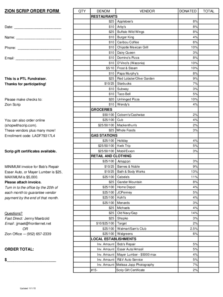 ZION SCRIP ORDER FORMQTYDENOM