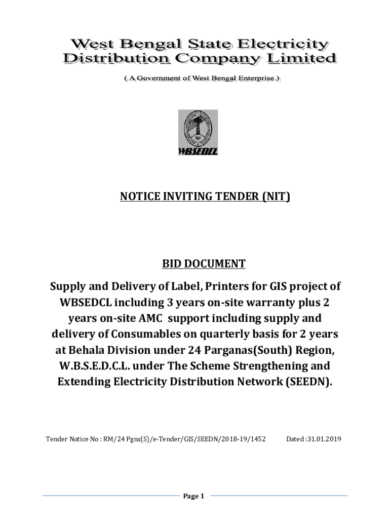 Get the free NOTICE INVITING TENDER (NIT) BID ... - WBSEDCL