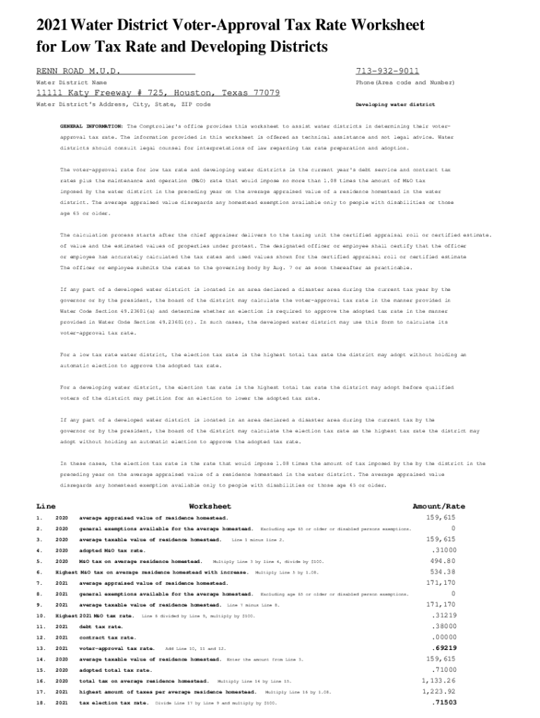 2021Water District VoterApproval Tax Rate Worksheet
